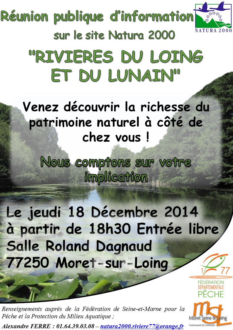 C’est à toutes ces questions, et d’autres encore, que la Fédération de Seine-et-Marne pour la Pêche et la Protection du Milieu Aquatique répondra lors de réunions publiques d’information sur le site Natura 2000 des « Rivières du Loing et du Lunain ». Ces réunions, à destination des propriétaires riverains des deux rivières, permettront à tout un chacun de s’informer sur le site, ses enjeux, son patrimoine naturel.
