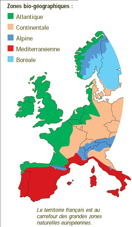 La France métropolitaine accueille 4 des 5 principales zones biogéographiques européennes (atlantique, continentale, méditerranéenne et alpine). De ce fait, elle abrite plus de 75 % des types d’habitats naturels identifiés comme prioritaires au niveau européen et 40 % de la flore d’Europe. (source UICN)