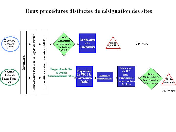 Les sites désignés au titre de la Directive « Oiseaux » sont nommés Zone de Protection Spéciale (ZPS). Ceux désignés au titre de la Directive « Habitats, faune, flore » Zone Spéciale de Conservation (ZSC).