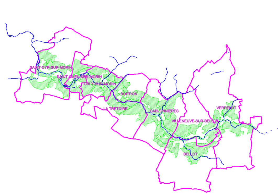 Il se situe dans la partie Nord-Est du département de Seine-et-Marne. Seules les 9 communes listées ci-dessous (de l'amont vers l'aval), sont concernées :