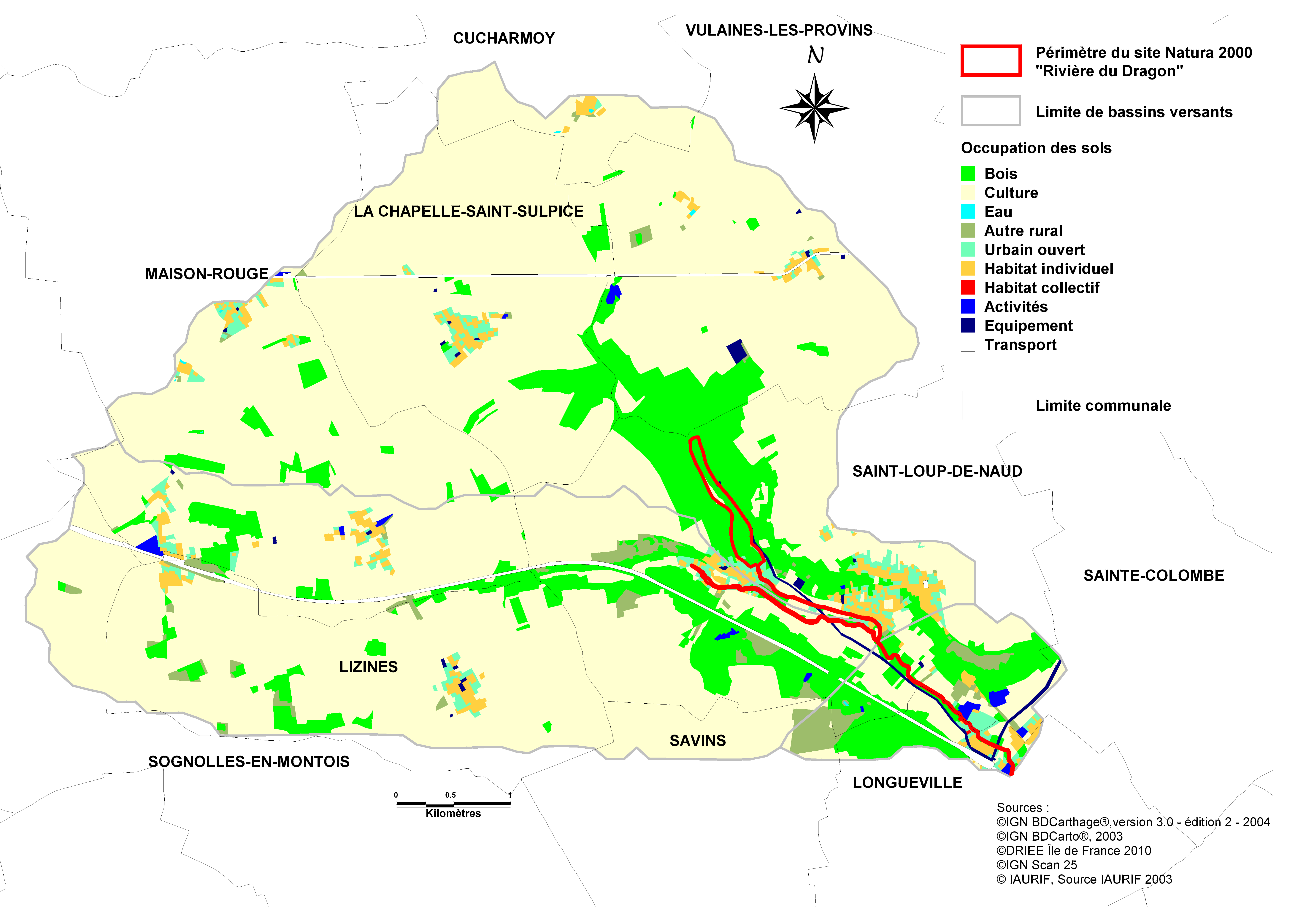 Carte d'occupation des sols sur le bassin versant de la rivière du Dragon.