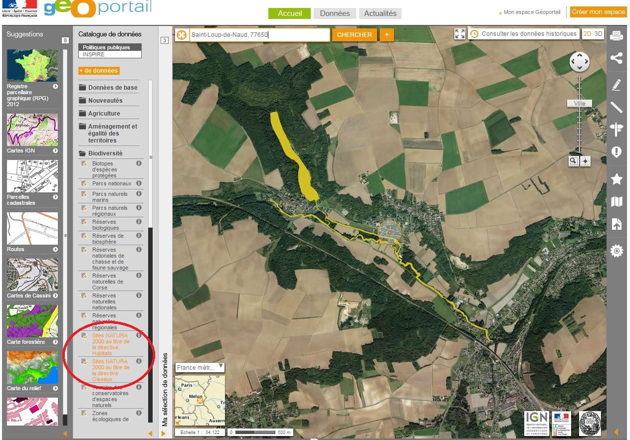 3) Sélectionnez l'affichage des sites Natura 2000 dans le catalogue de données :